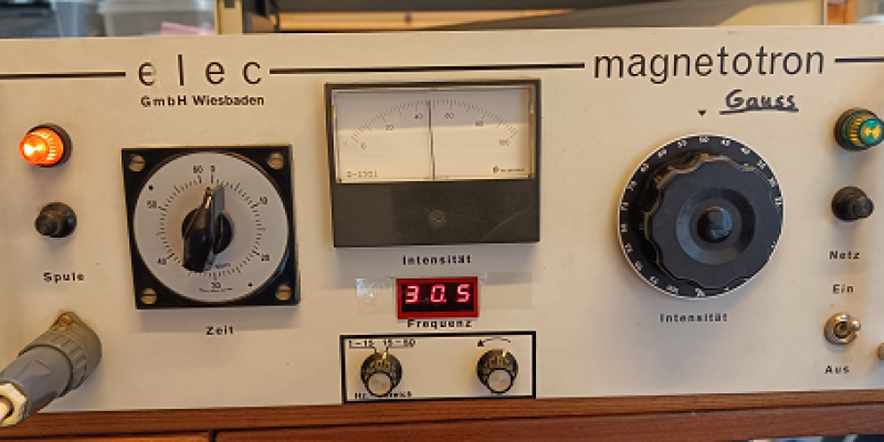 Service på en magnetbehandlingsapparat, där slutsteget brunnit pga kortslutning.